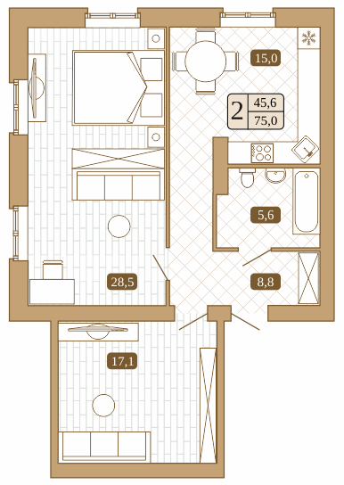 2-комн 75.00 м2